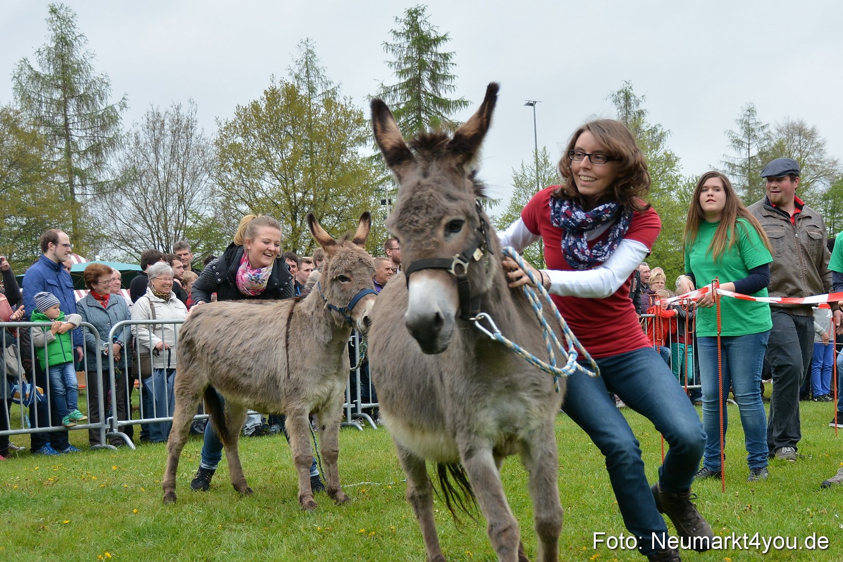 Besonders eilig hatten es die Esel in der ersten Runde des diesjährigen Eselrennens nicht. Oft legten sie eine Pause ein und ließen sich nur mit dem richtigen Eselgeflüster wieder in Schwung bringen. Trotz leichten Nieselregens war das Rennen gut besucht, ist es doch jedes Jahr wieder ein lustiges und schön anzusehendes Treiben für Jung und Alt.