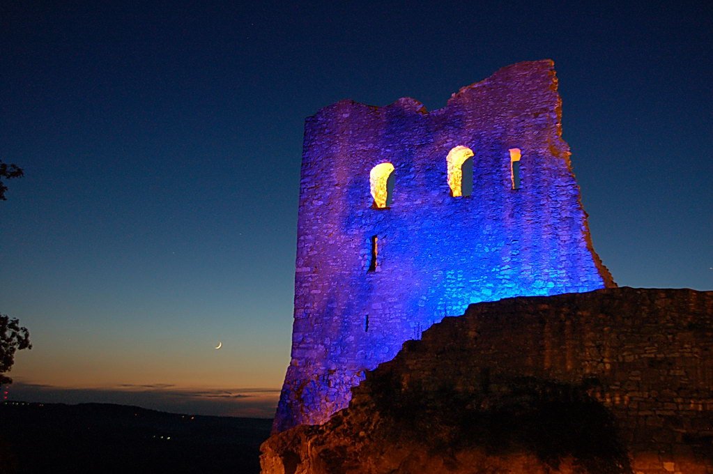 In den Abendstunden wurde die Burg Wolfstein in buntes Licht getaucht und bildete so eine  atemberaubende Farbenkulisse für die Besucher.