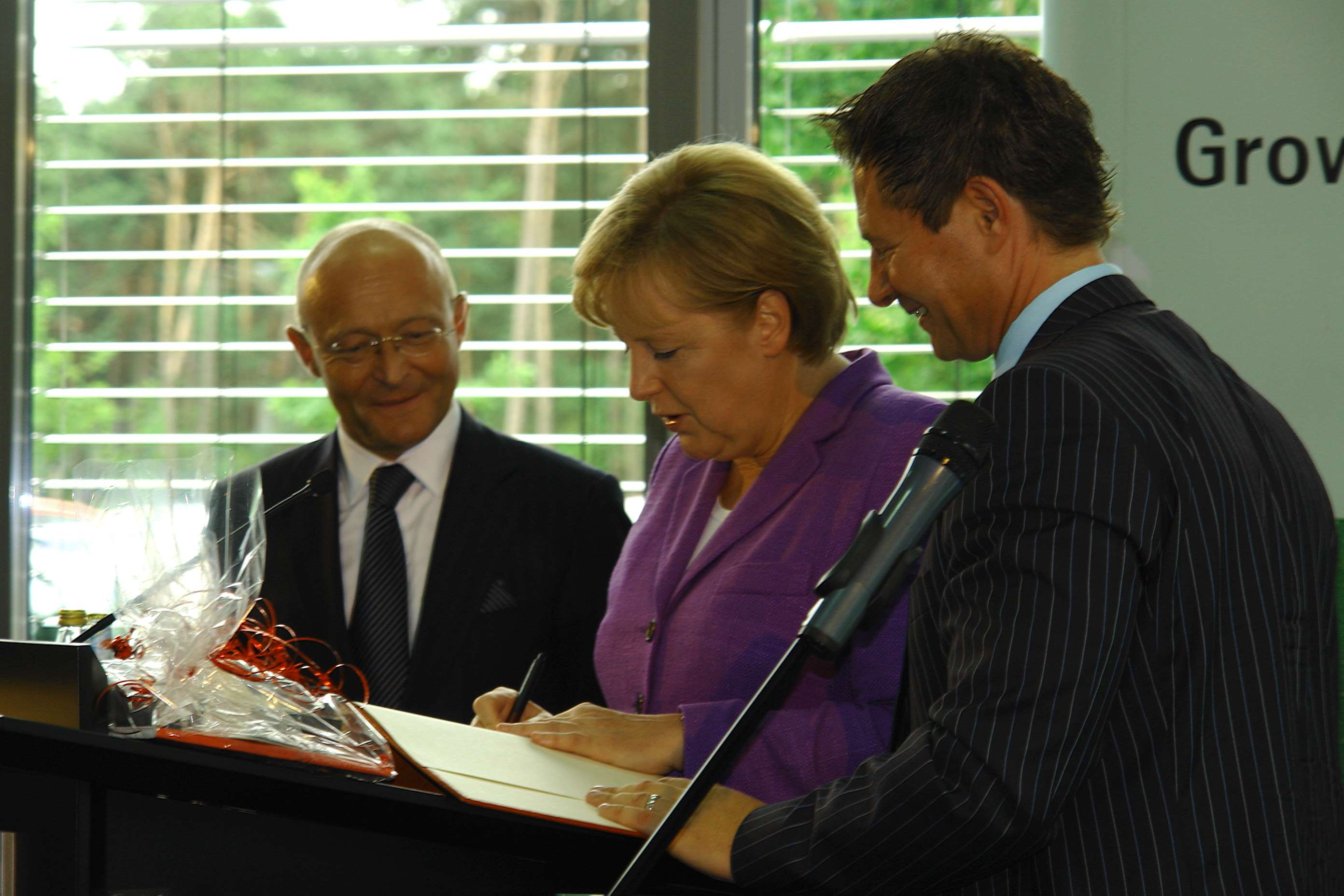 Bundeskanzlerin Angela Merkel hat sich heute im Rahmen ihres Besuches der Neumarkter Firma Bionorica in das Goldene Buch der Stadt eingetragen.