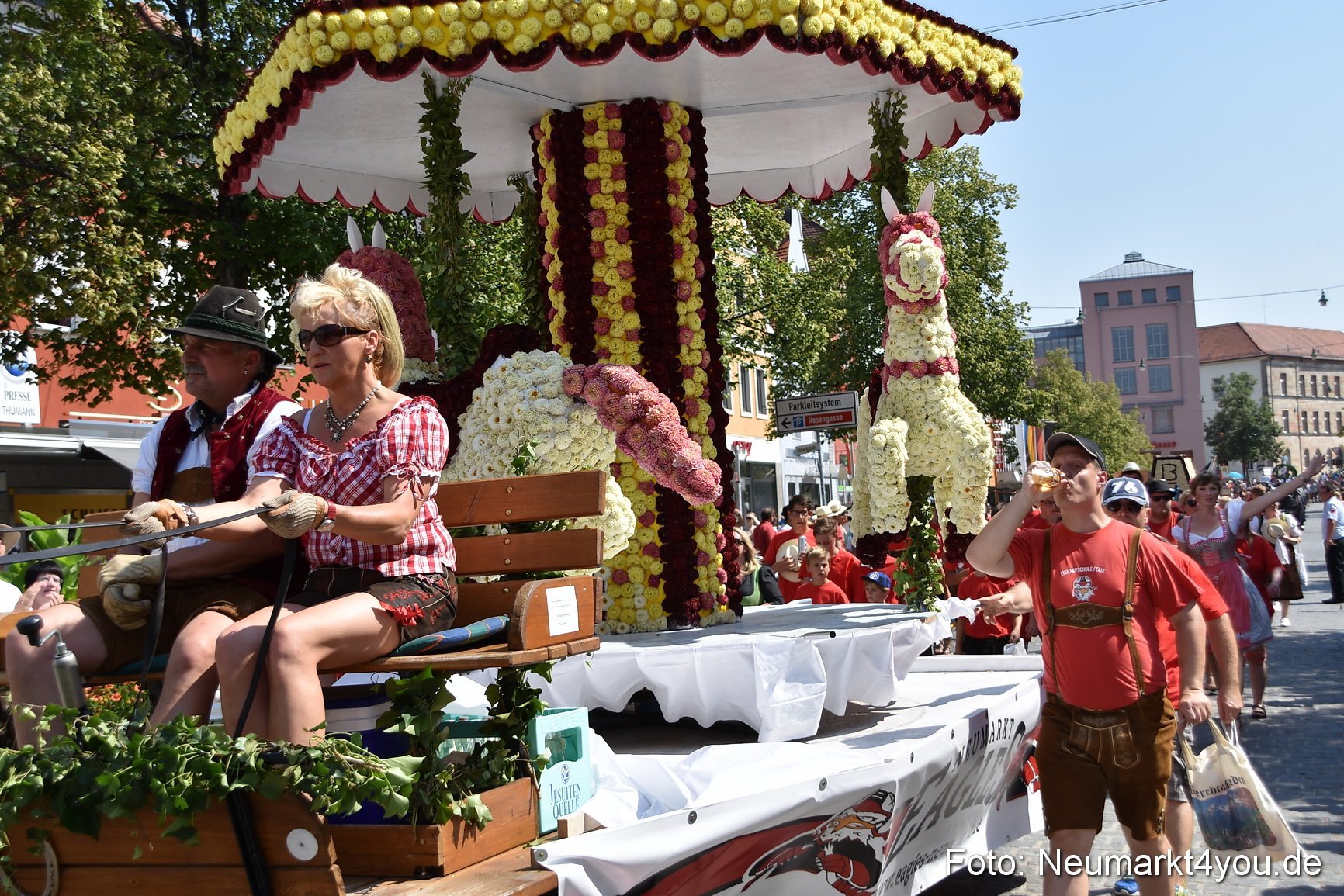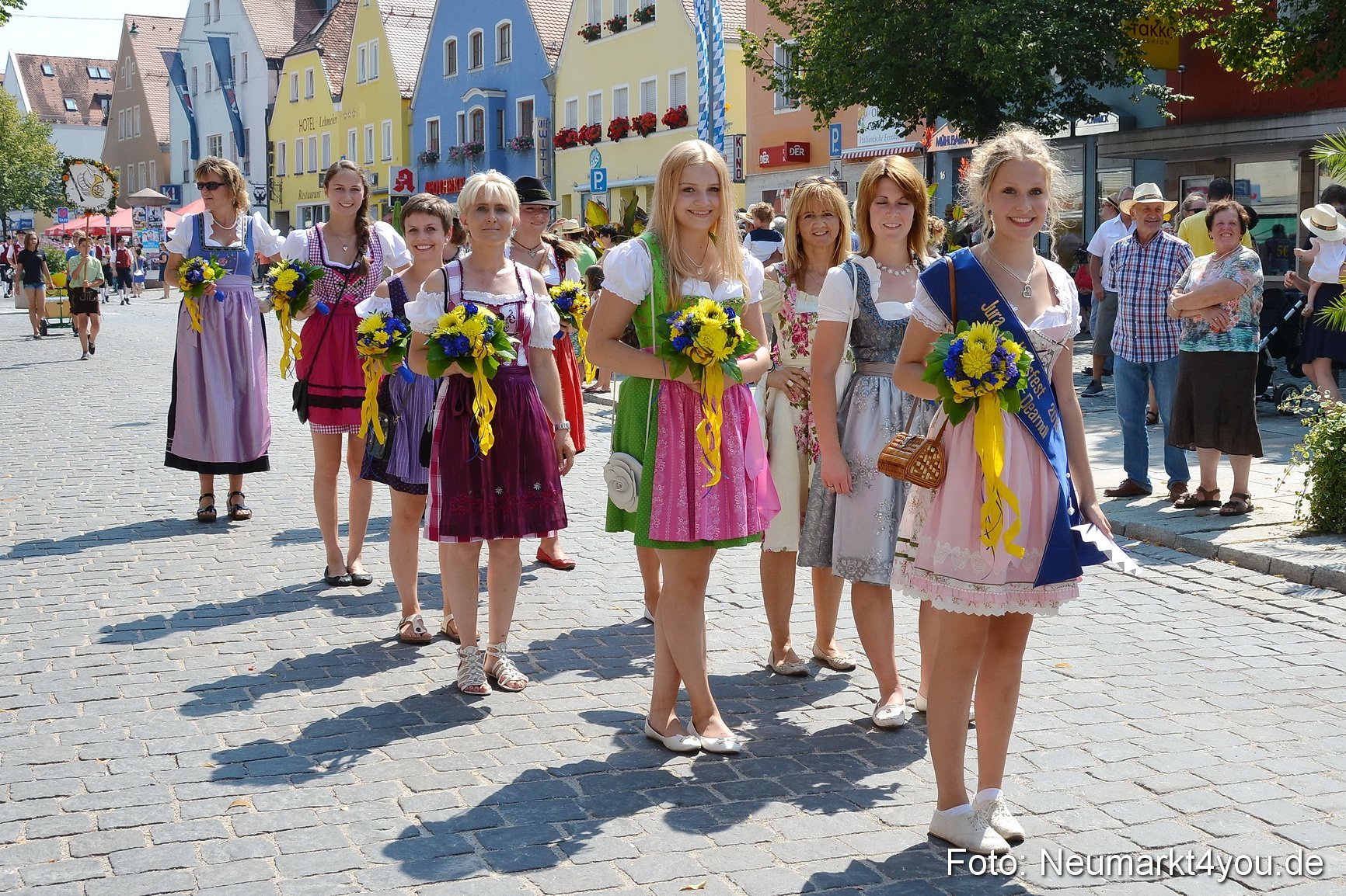 Im Rahmen des diesjährigen JURA-Volksfestes schlängelte sich am Sonntag wieder der traditionelle Festzug durch die Neumarkter Altstadt zum Festplatz. Unter dem Festzugsmotto „Neumarkt – da leb i gern“ präsentierten rund 100 Gruppen ihren Beitrag. Mehrere Zehntausend Zuschauer an der Wegstrecke freuten sich an den geschmückten Pferdewagen, den besonders gestalteten Fahrzeugen und den historischen Gruppen. Auch die Präsentationen in Trachten und ideenreiche Darstellungen stadtgeschichtlicher und heimatbezogener Ereignisse zogen die Aufmerksamkeit auf sich. Rund 45 Gruppen nahmen am Zug mit Kutschen, Festwagen oder Reitergruppen teil.