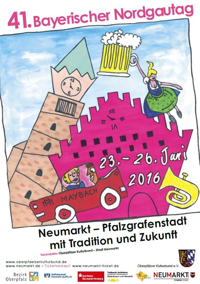 Unter dem Motto: „Neumarkt – Pfalzgrafenstadt mit Tradition und Zukunft“ findet vom 23. bis 26. Juni 2016 in Neumarkt der 41. Bayerische Nordgautag statt – ein zentrales Kulturfest der Oberpfalz unter der Schirmherrschaft des Bayerischen Ministerpräsidenten.