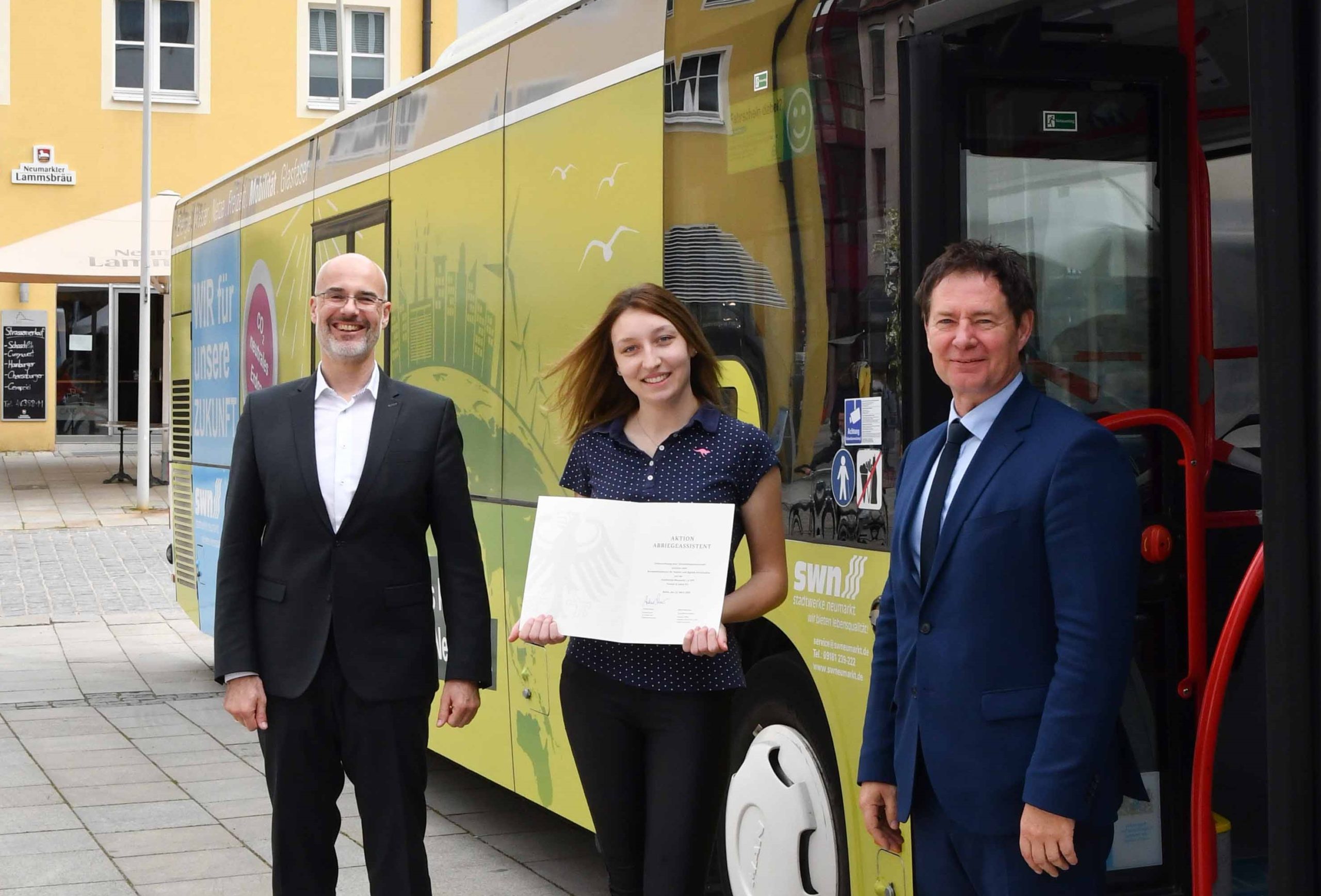 Die Stadtwerke Neumarkt i.d.OPf. sind „offizieller Sicherheitspartner des Bundesministeriums für Verkehr und digitale Infrastruktur“. Im Beisein von Oberbürgermeister Thomas Thumann und Stadtwerke-Chef Dominique Kinzkofer präsentierte Melanie Ullermann, Sachbearbeiterin Stadtbus/OEPNV, die offizielle Urkunde von Bundesminister Andreas Scheuer.