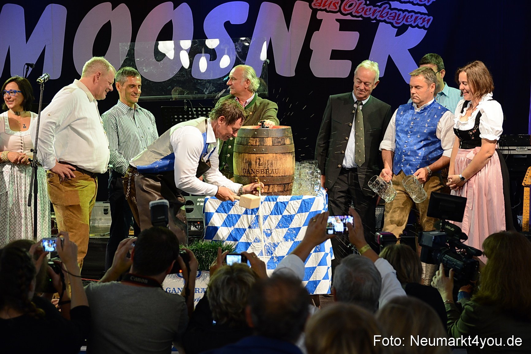 Das dürfte in der Neumarkter Volksfestgeschichte rekordverdächtig sein: Mit nur einem Schlag hat Oberbürgermeister Thomas Thumann am Freitag, 12.8.2016 gegen 19.15 Uhr das erste Fass Festbier der Neumarkter Gansbräu angezapft und damit das diesjährige Neumarkter JURA-Volksfest eröffnet, das noch bis 22.8. dauern wird.