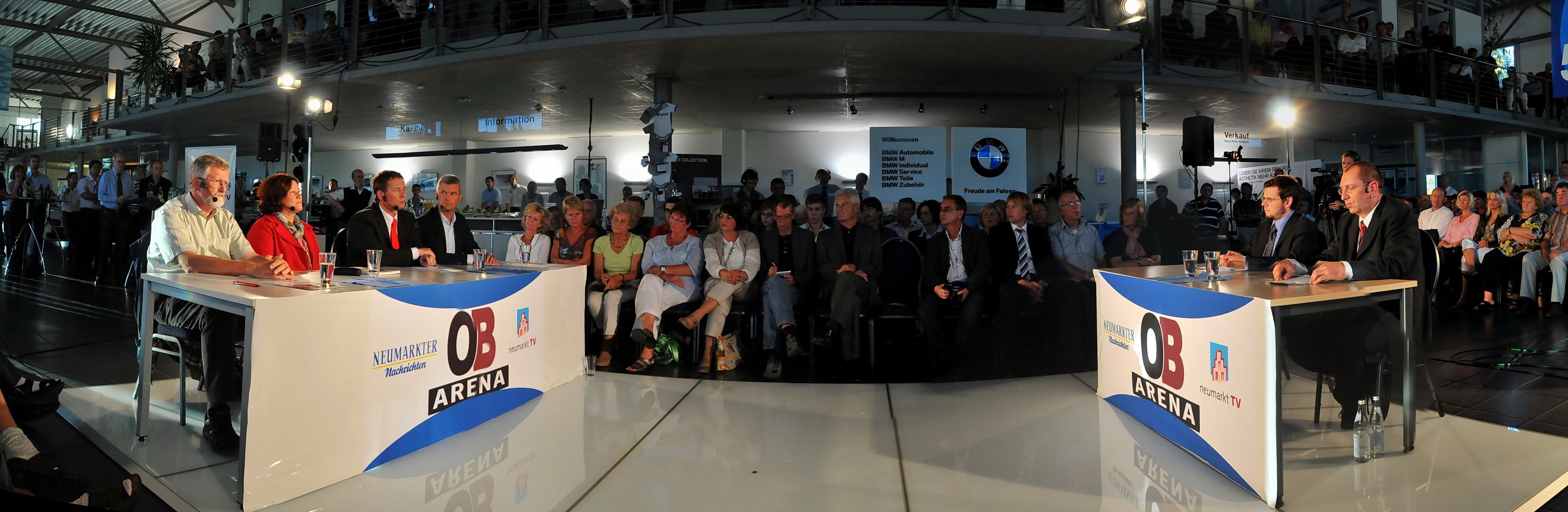 Impressionen von der OB Arena im Autohaus Partl, veranstaltet von Neumarkt TV und den Neumarkter Nachrichten. Den ersten Teil der jeweils 15-minütigen Aufzeichnungen sehen Sie am Freitag, 16.09.2011 zu den üblichen Kabelzeiten (ab 17:45 und dann stündlich) und über SAT um 20.45 Uhr sowie im Internet unter www.neumarkt-tv.de Der zweite Teil läuft eine Woche später am Freitag den 23.09.2011. Die anschließende rund 60-minütige Diskussionsrunde mit dem Neumarkter Publikum sehen Sie nur im Internet ab Freitag den 16. September unter www.neumarkt-tv.de