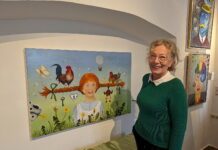 Ingrid Hacker, mitwirkende Künstlerin der Life Side Gallery mit dem Thema Geburt, und Mitglied des Kunstkreis Jura, hat den Begriff „Sinfonische-Malerei“ geprägt.