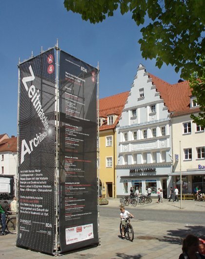 Zum vierten mal startet die Architekturwoche des BDA Bayern. Was 2002 mit der A 1 als Pilotprojekt in München angefangen hat, ist inzwischen eine feste Institution geworden. Der große Werbeturm am Oberen Markt kündigt es seit dem Wochenende an.