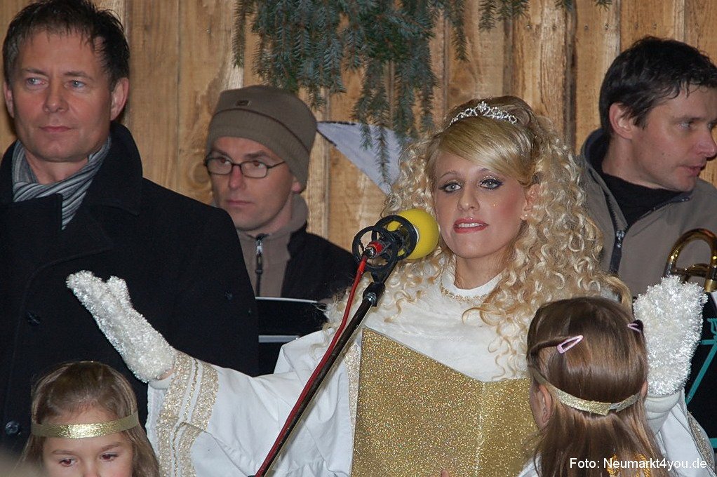 Das Neumarkter Christkind Angela Steinmetz eröffnete mit seinem Prolog am Donnerstagabend, umringt von zahlreichen Zuschauern, den Neumarkter Weihnachtsmarkt.